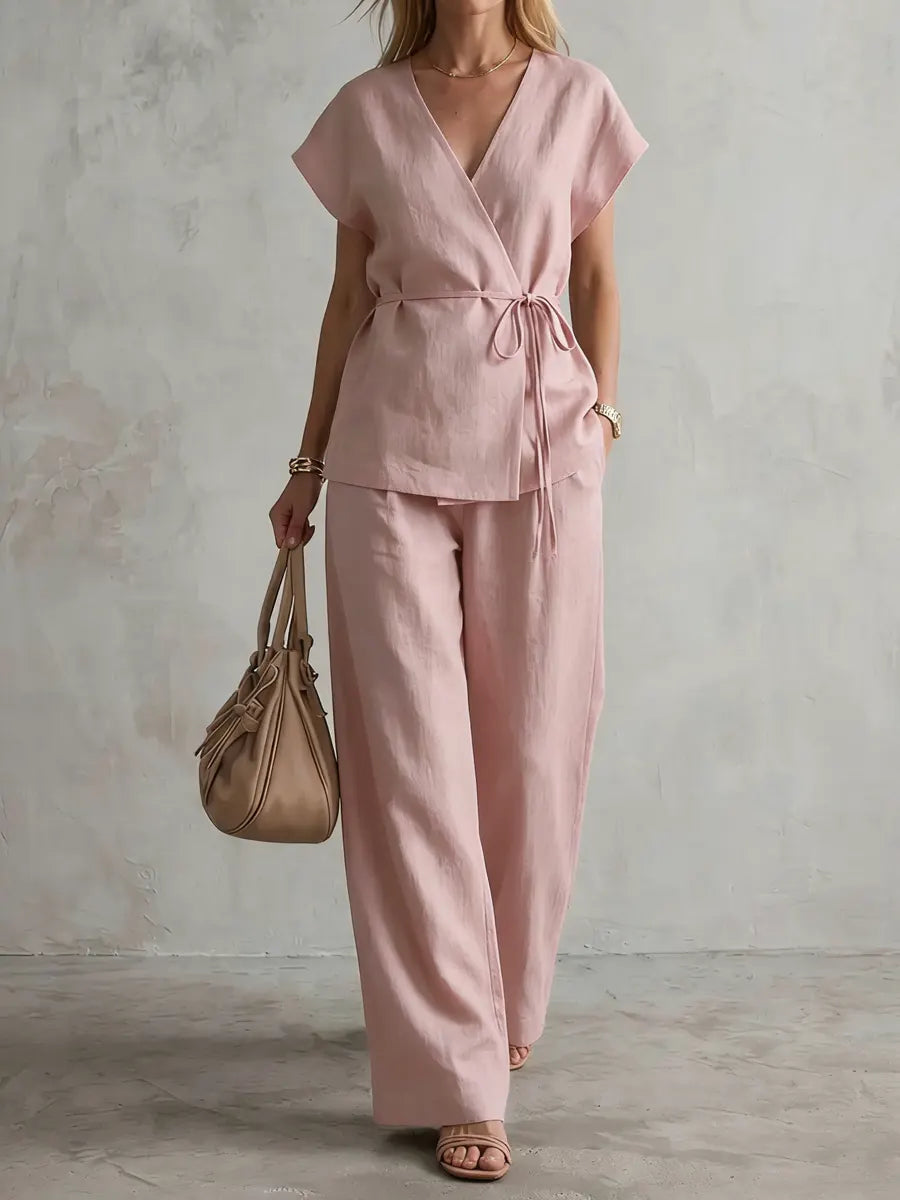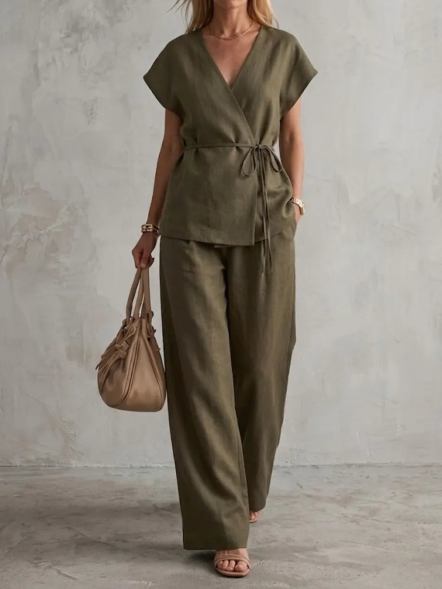 Women's Minimalist Cotton And Linen Wide-leg Pants Set