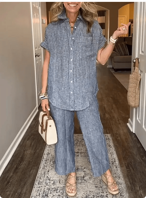 This cotton and linen set of classic pocket shirts combines elegance with casual simplicity for any occasion.