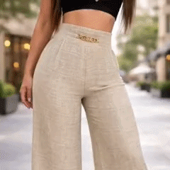 - Houselyys™ High Waist Wide Leg Trousers with gold chain-link belt accent